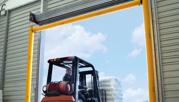 Height Restrictors protect the edges of doorway openings and prevent high vehicles or loads from impacting overhead equipment