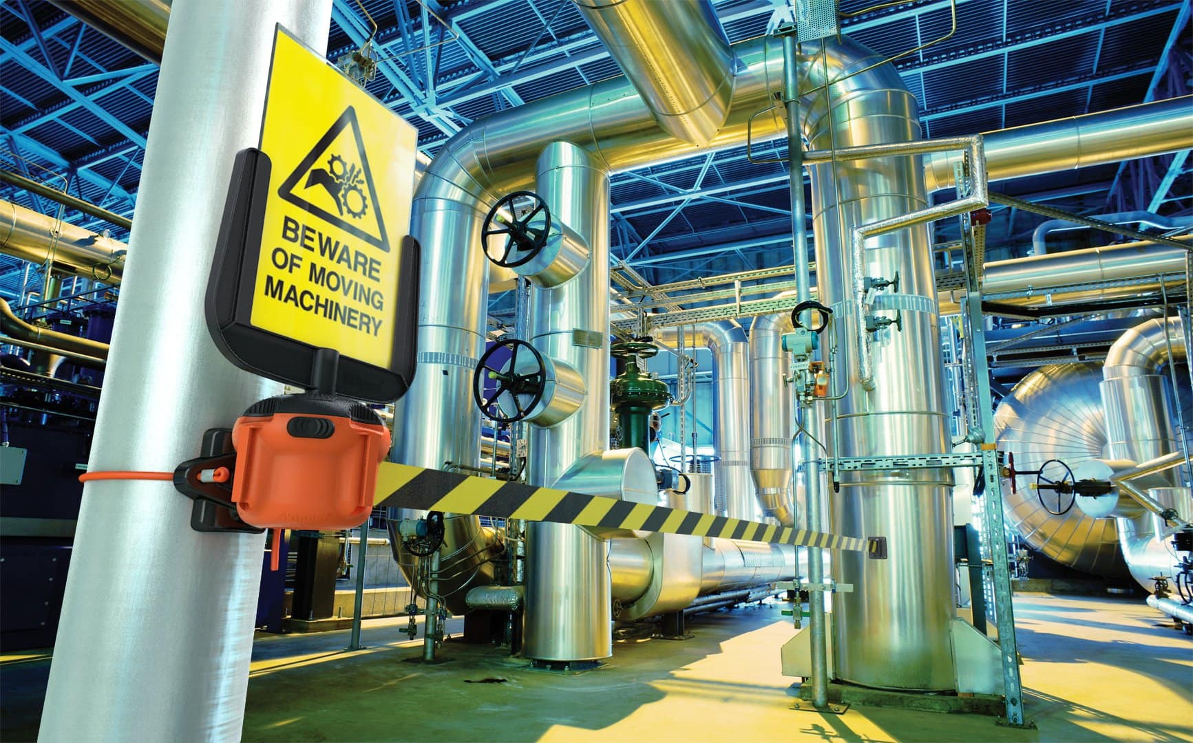 The cord strap clips are highly practical for indoor and warehouse environments, where they easily connect to shelving and pillars to both hold the Skipper XS unit and receive its tape end clip.